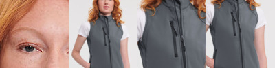 3-layer softshell fabric with breathable membrane and bonded microfleece lining, water resistant to 5000mm. Side pockets and chest pocket with inner lining, reversed zip and cord pulls. Full zip with inner storm flap and zip neck protector at collar. Bungee cord in hem. Adjustable cuffs. Drop tail. Feminine fit. Large left chest side decoration access.