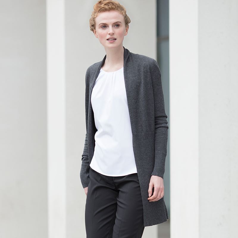 Fine yarns create high quality density fabric, providing warmth without bulk. Storm flap with fold-over zip concealer. Princess line side panels for flattering feminine fit. Fashionable flatlock stitching on seams. Front-facing zip pockets, with concealed zip, swept hem front and back, open cuffs with body-coloured jersey binding.