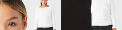 Tri-blend off the shoulder sponge fleece with wide neck and wide rib cuffs/waistband. Laundered.