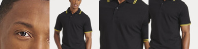 Fabric 30/1. Semi-fitted silhouette with side seam and 1" side vents. Rib knit contoured collar and hemmed sleeves. Woven label. Care label. Three tone-on-tone buttons (some colours have a contrast colour placket). Oeko-Tex® Standard 100 Certified.