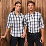 Long sleeve semi-fitted shirt for men with an attractive check pattern. Single button cuff and sleeve guard which is designed to be rolled up and secured in place with a button and tab on the upper arm. Soft collar styling with curved hem.Washing InstructionsDomestic wash at 40°c.