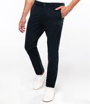 Enzyme washed. Modern style. Flat front. Belt loops. Zip fly with button over. Two side pockets.