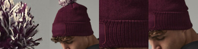 Tear-out label for ease of rebranding. Two-tone pom pom. Double-layer knit. Ribbed cuff. Cotton twill patch for printing.Washing InstructionsHand wash only, do not iron, do not dry clean.