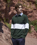 Tag free retro fit rugby shirt. Cut and sew contrast stripe panel around centre. Heavyweight single Jersey. Contrast traditional woven (twill) rugby collar. Herringbone back neck tape. Contrast herringbone taped side vents. Taped shoulders. Elastane reinforced ribbed cuffs for shape retention. Twin-needle hem. Topstitching at armholes and panels. Concealed button placket. Herringbone inner placket. 2 x rubber buttons.Washing Instructions40 Cotton. Wash at 40 degrees. Do not bleach. Do not tumble dry. 2 dot iron. Professional dry clean. Wash dark colours separately. Re-shape whilst damp. Do not leave folded when damp. Dry out of direct heat and sunlight. Iron on reverse of decoration.