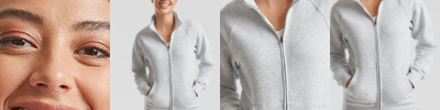 Cadet collar with single jersey back neck tape. Covered zip for enhanced printability. Waist and cuff in cotton/Elastane rib.