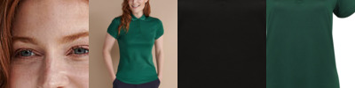 Modern fit women's wicking polo shirt with added stretch and shaped side seams. Lightweight micro-fine piqué with a short point collar, fitted sleeve and cuffs. Front and back shoulder yolk detail. Micro-fine piqué is ideal for printing and embroidery. 3-button placket with dye-to-match buttons.