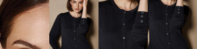 Fully fashion super fine yarn knit. Neck rib, sleeve and bottom hem rib. V-neck. Set-in sleeve. 50% Biella merino wool, 50% anti-pilling acrylic.