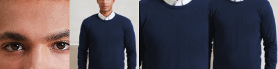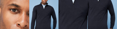 Ribbed knit neck , collar and cuffs. Crew neck style. Fine knit. Cotton rich.