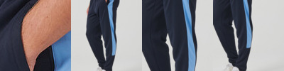 Slim leg knitted track pants with contrast colour side panels. Zipped side pockets. Elasticated waist with internal drawcord. Ankle zips with zip guard and semi-automatic lock zip sliders.