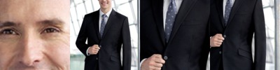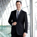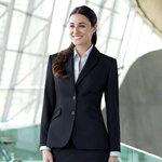 Single breasted jacket, 2 button front, side vents, 3 inside pockets, Sew Easy Embroidery System. Size 38", 40", 42", 44", 46"
