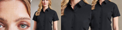Ladies Easycare short sleeve blouse with improved wear and appearance. Supreme poplin. Soft collar styling. Rounded bottom hem. Fitted styling with bust and back darts. Easy cut-out label for rebranding. Made from OEKO-TEX® Standard 100 fabric.