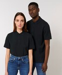 100% recycled polyester. Textured Birds eye knit. Ribbed collar. Taped neck. Side seams – non tubular body. Twin- needle detail at hem and sleeve. Set-in sleeves. Crew neck. Fashion fit. Size label only for easy rebranding. Vegan certified.
