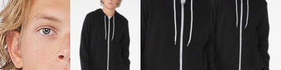 White cord and metal zipper. Kangaroo pockets.