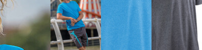 Flat lock stitch seams. Melange colours with contrast inside neck strap. Lightweight. Quick Dri treatment. Soft athletic quick dry fabric with high stretch. Comfort fit. Co-ordinated Fitness wear range. Oeko-Tex certified.