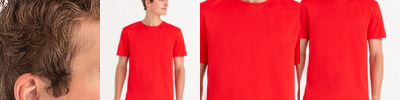 Set-in sleeve. 1x1 rib at neck collar. Inside back neck tape in self-fabric. Sleeve hem and bottom hem with wide double-needle topstitch. Unisex, medium fit, short sleeve, round-neck. 100% organic ringspun combed cotton. Single Jersey. Fabric washed. Vegan certified. Oeko-Tex certified. Fairwear Foundation certified.