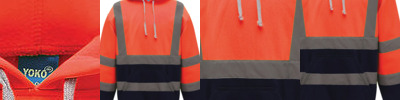 Hi-Vis conforms to EN ISO20471 Class 3; Made of water-repellent anti-pill single jersey knitted soft-feel polyester fabric; Two 5cm width reflective tapes around the body and arms, and one over each shoulder; Attached hood with draw cord adjustment; Taped back neck for extra comfort; Drop shoulder; Knitted ribbed cuffs and waistband; Front kangaroo pocket; Twin needle stitching throughout;.