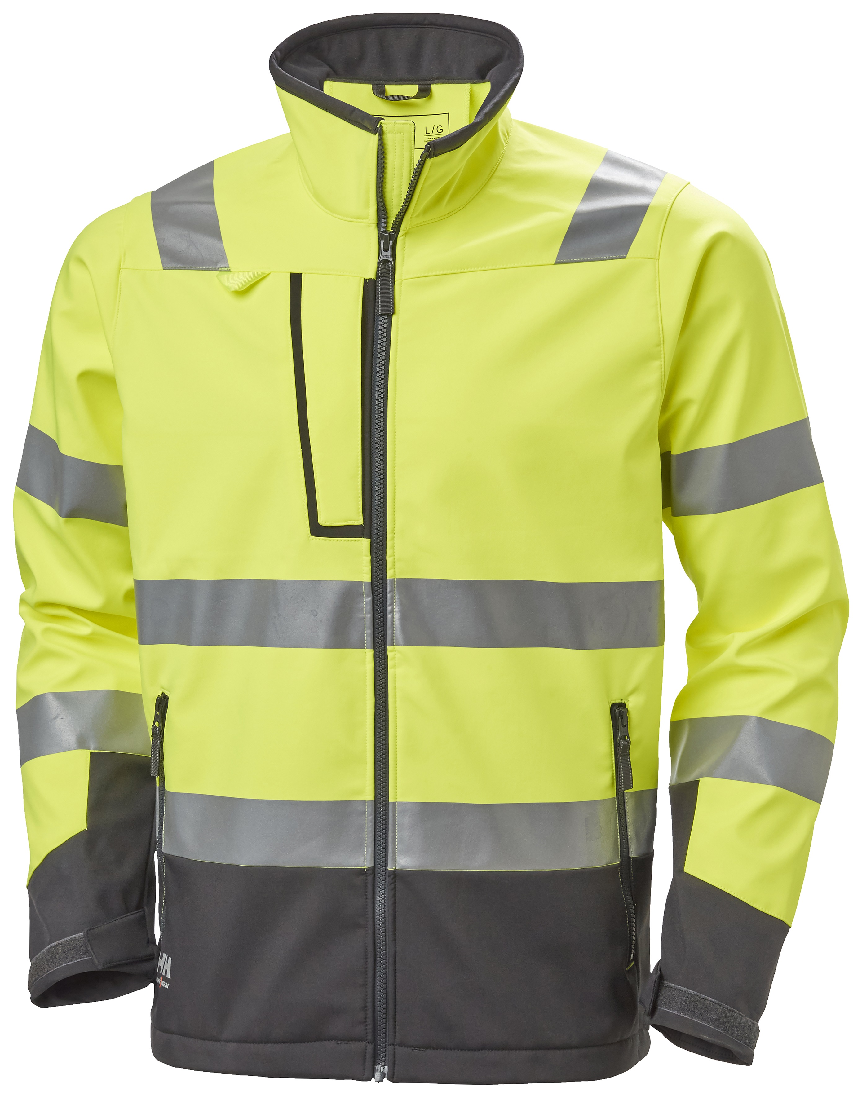 Description The Alna 2.0 softshell jacket is a great choice when comfort and visibility is needed. The articulated arms, practical pocket solutions and adjustable hem & cuffs makes this a very flexible garment for multiple scenarios while the heat transfer reflectives give it a very sleek look. Features YKK® Zipper AMANN threads - German quality No shoulder seams Softshell fabric with membrane and DWR Brushed polyester inside collar YKK® front zipper with chin protector Chest pocket with YKK® zipper Hand pockets with brushed lining Hand pockets with YKK® zipper Adjustable cuffs Articulated sleeves for optimal mobility Adjustable hem with elastic drawcord inside hand pocket Extended back for improved comfort ID card loop EN ISO 20471:2013+A1:2016 - HIGH VISIBILITY Composition Shell: 100% Polyester - Shell 2: 100% Polyester - Lining: 100% Polyester Certifications EN ISO 20471:2013+A1:2016 - HIGH VISIBILITY Fitting Regular Wash Care Close hook and loop before washing,Close zippers before washing,Do not use fabric softener,Wash dark colours separately Wash Icon Machine wash in luke warm water - 40°C max 20x,Do not bleach,Do not tumble dry,Do not iron,Do not dry clean Technology PFC-free DWR