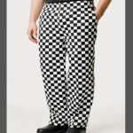 65% Polyester 35% Cotton 195gsm. Unisex pull on chef’s trouser. Available in large “Black & White” Check or Black. Elasticated waist for easy pull on trouser. Unisex sizing. Stocked in 30.5” inside leg. Side swing pockets. Draw cord
